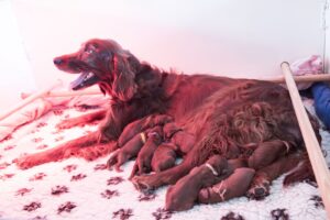 De Ierse Setter is een vrolijke, sportieve hond die graag een plaats heeft binnen het gezin. Zijn karakter is het beste te omschrijven als half engel, half bengel, maar ze zijn met een consequente en zachte aanpak prima gehoorzaam te krijgen. Het is een allemansvriend die graag een stevige wandeling maakt.