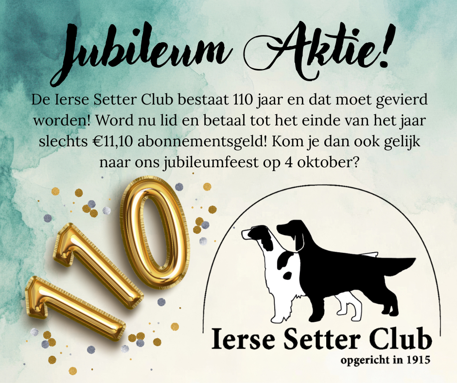 Wil je ook graag inschrijven voor het jubileumfeest, maar ben je nog geen lid van de Ierse Setter Club? Dan is nu je kans om gebruik te maken van deze speciale jubileum actie i.v.m. het 110-jarig bestaan van de Ierse Setter Club. Speciaal voor jou… Voor een digitaal abonnement betaald je namelijk geen € 20,00 […]